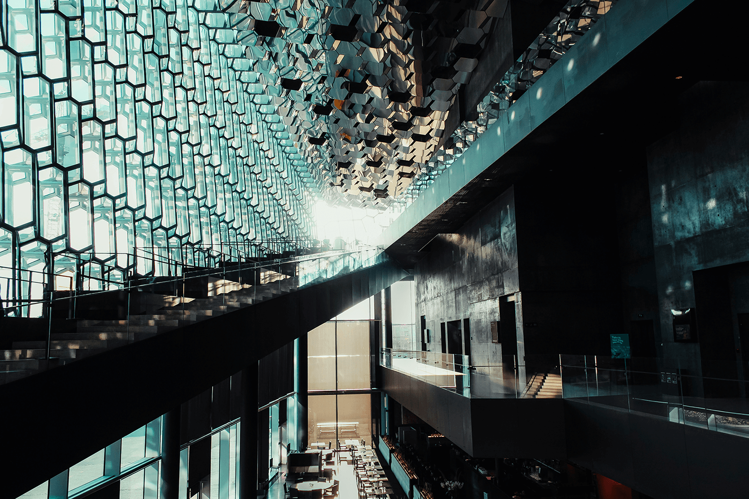 Located in Reykjavik, Iceland, the Harpa Concert Hall provides a visually stunning example of how architecture accomplishes goals. Right on the waterfront, on the harbour, it’s certainly out of place. It’s sharp, geometrical, and harsh compared to the soft water around it. It’s also made entirely of glass and structural elements. Bright lights and concrete add to the display, as do the rows and rows of individual paned windows.